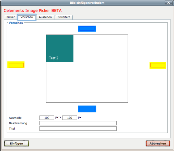 // Über Vertikaler Abstand bzw. Horizontaler Abstand kann der Abstand vom Bild zum Text sowie zum äusseren Content-Element bestimmt werden.