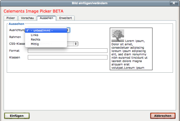 // Für die Ausrichtung des Bildes innerhalb des Textes gibt es insgesamt drei unterschiedliche Darstellungsweisen (Links, Rechts und Mittig)