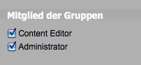 - Administrator (Mitglieder dieser Gruppe haben alle Rechte der Content Editor Gruppe plus zusätzlich Zugang zur