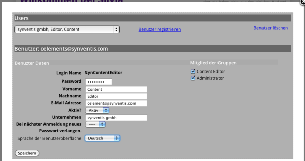 - Content Editor (Mitglieder dieser Gruppe dürfen Menüpunkte erfassen, verschieben, löschen, umbenennen und Inhalte