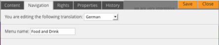 // Click on SAVE and then on CLOSE, the new navigation point and its page are created