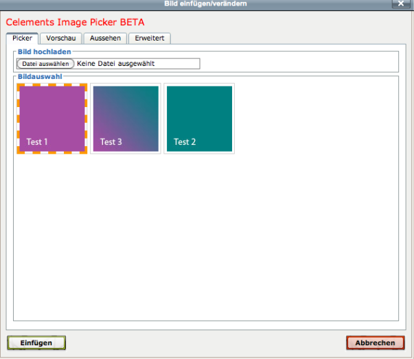 // Das gewünschte Standbild auswählen (dieses muss, falls noch nicht dort, hochgeladen werden. Infos dazu sind hier zu finden) und "Einfügen" klicken.