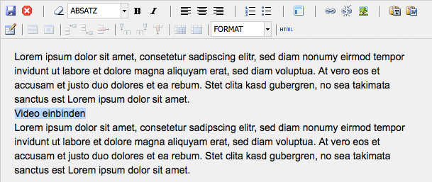 // Einfügen klicken. Danach erscheint der Link mit einem Platzhalter für das Video.